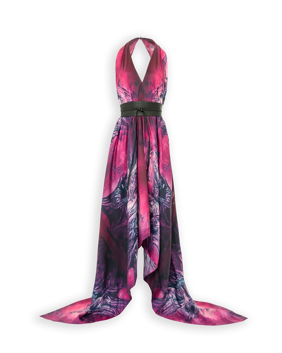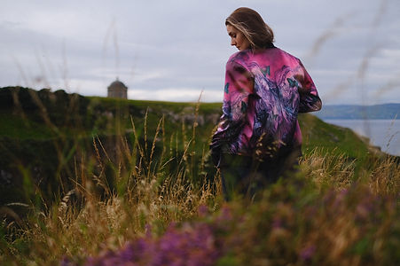 This print is based on a drawing I produced for my ‘Love me to Death’ exhibition a few years back. The particular piece in pencil and chalk is a departure from my usual style, much looser and freer, and it felt right to incorporate it into the Éadach range. Its floaty, transparent feel leant itself perfectly to the idea of the Banshee. The colours are inspired by ‘Róisín Dubh’, the Dark Rose. Legend tells of a council of Druids who wore black and red robes emblazoned with the rose. It was also used as a metaphor for Ireland and is the title of a famous Irish song.