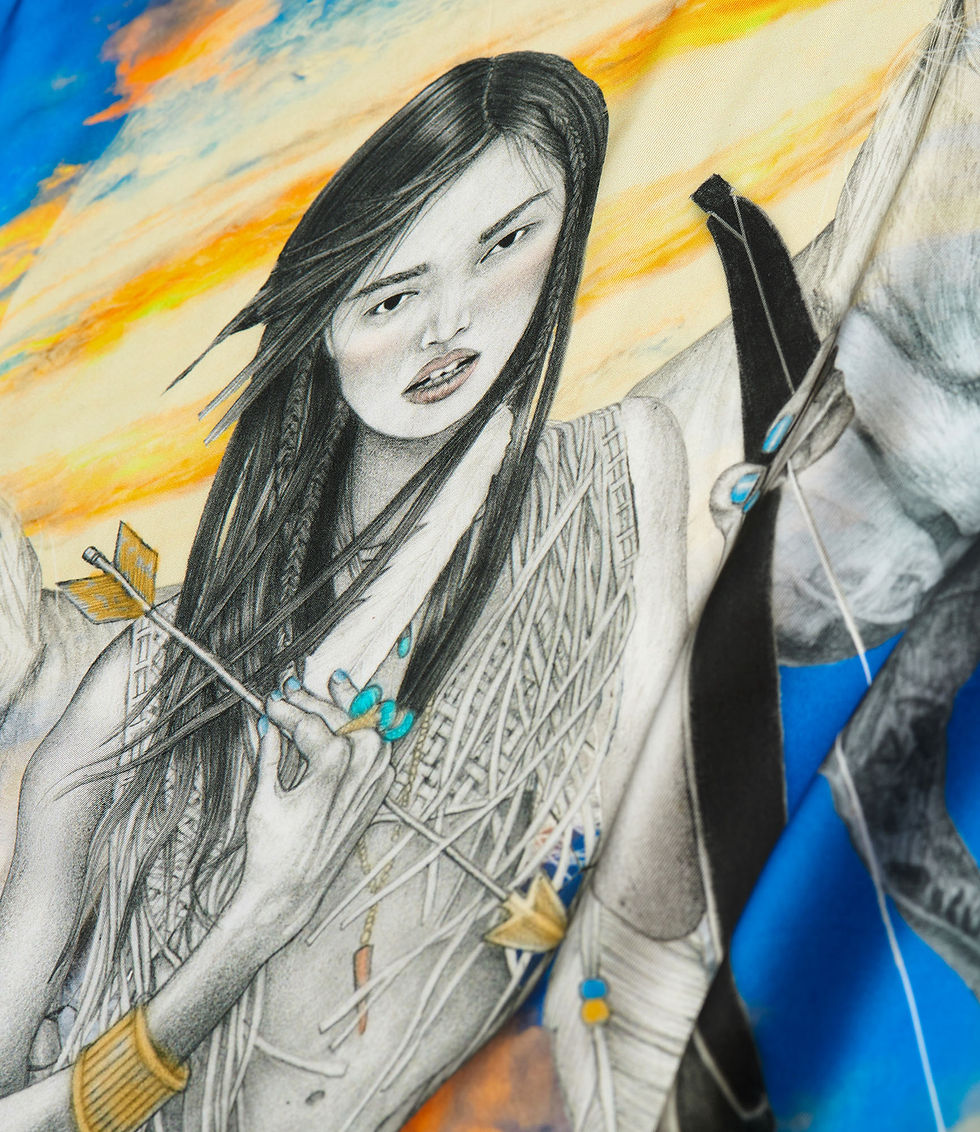 The Éadach by Sara O’Neill Zodiac Series is a flight of fancy fashion reimagining of the Star Signs. Each character has been dreamt up based on the supposed personality traits of the signs, each print meticulously researched and crafted featuring the colours, planet, flower, birthstone and constellation associated with each sign. This is the kind of work that Sara loves the most, where her imagination can run wild and she can lose herself in painstakingly detailed pencil work for days on end. 100% silk, handrolled edge, 90cm.